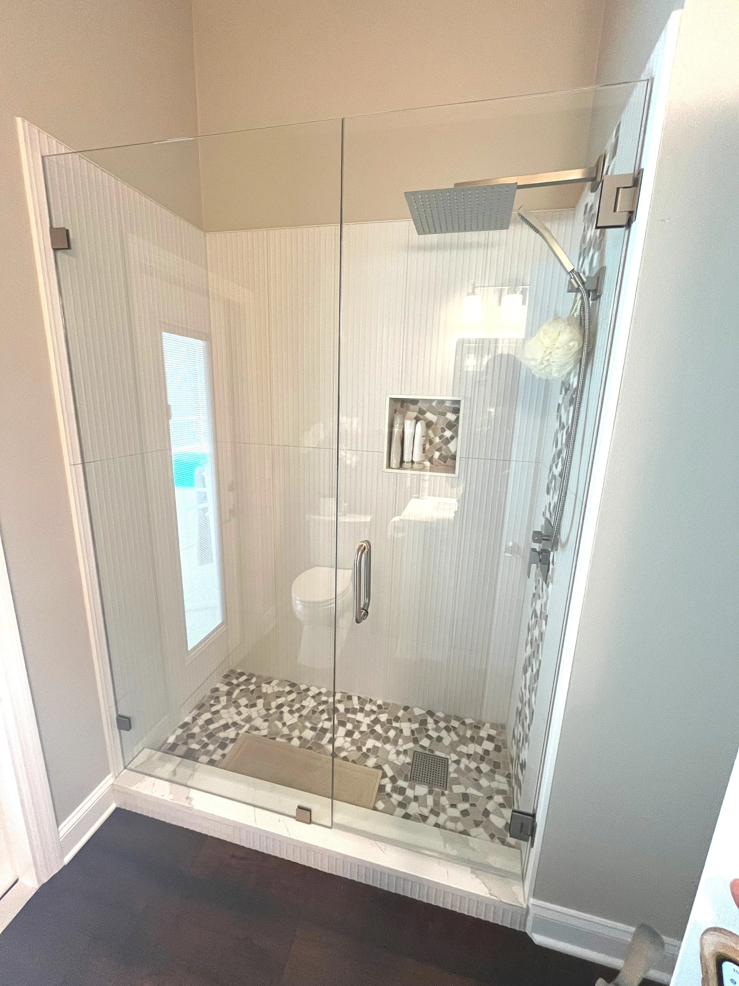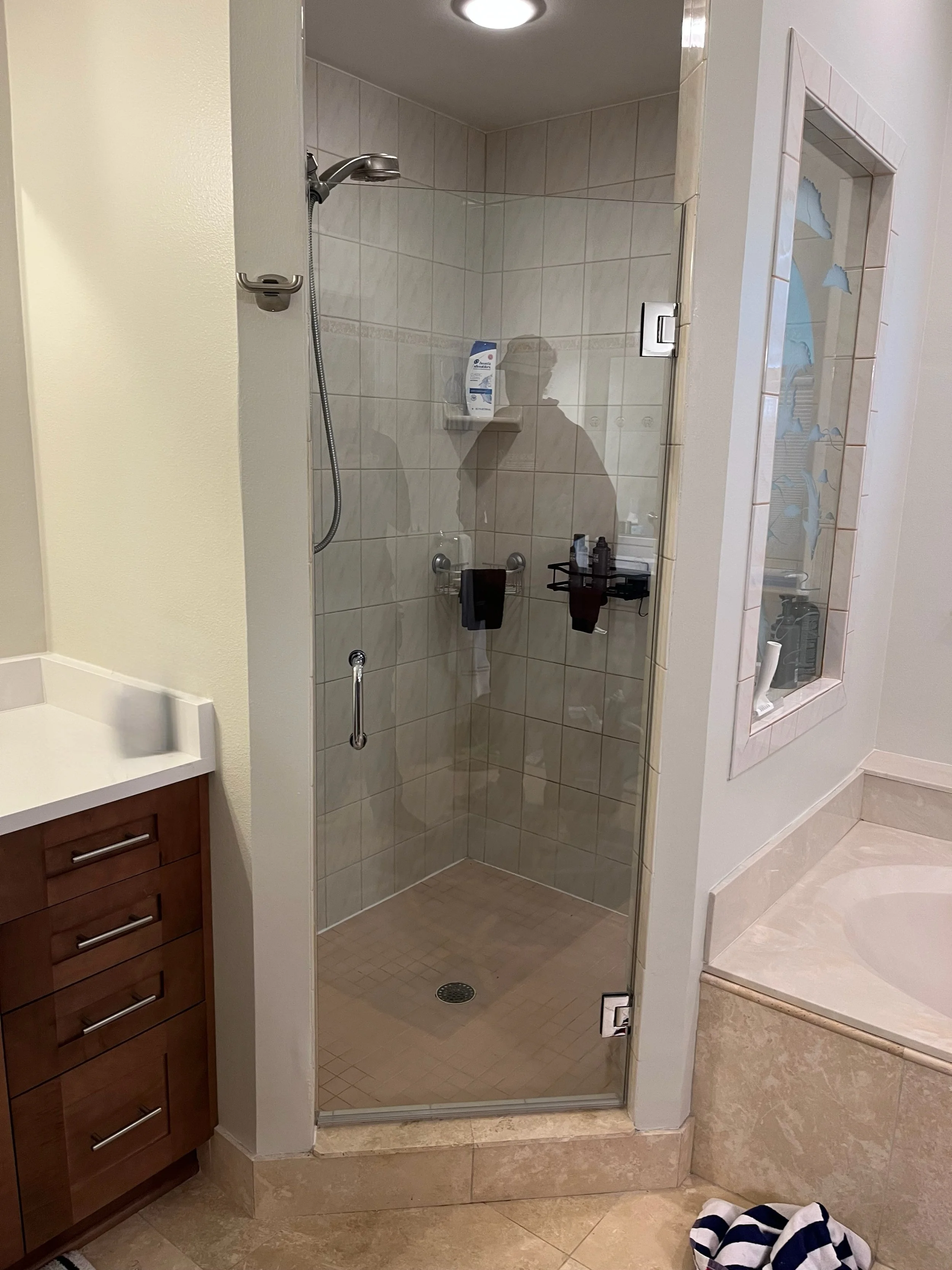 Shower removal and replacement is a good option to save money on a full remodel while giving your bathroom a whole new updated look. Or have a broken shower that needs replacing? We can clean it up and measure for a new replacement the same day. It’s also great for professionally uninstalling your existing glass safely, so you can start your next bathroom remodel project without hiccups. The first glass door or panel removed is $250.00. Any additional glass door or panels being removed within shower space is $200.00 extra per piece. All glass, existing glass hardware, and silicone will be removed from the shower space and disposed of by us off site. After the removal process, if not retiling, we professionally evaluate your existing tile to make sure it is capable of having new glass. If there are no major issues for the homeowner to take care of, we can measure for a new unit the day of removal. We also offer to come out before removal and rough quote your shower before you are committed on taking it out.
